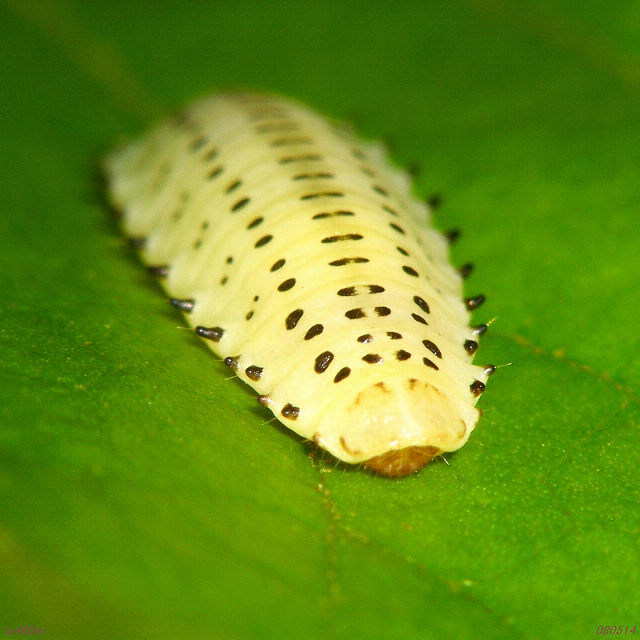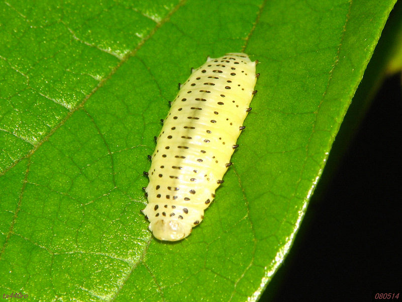 >平べったい幼虫、体の端っこは突起状になってますね