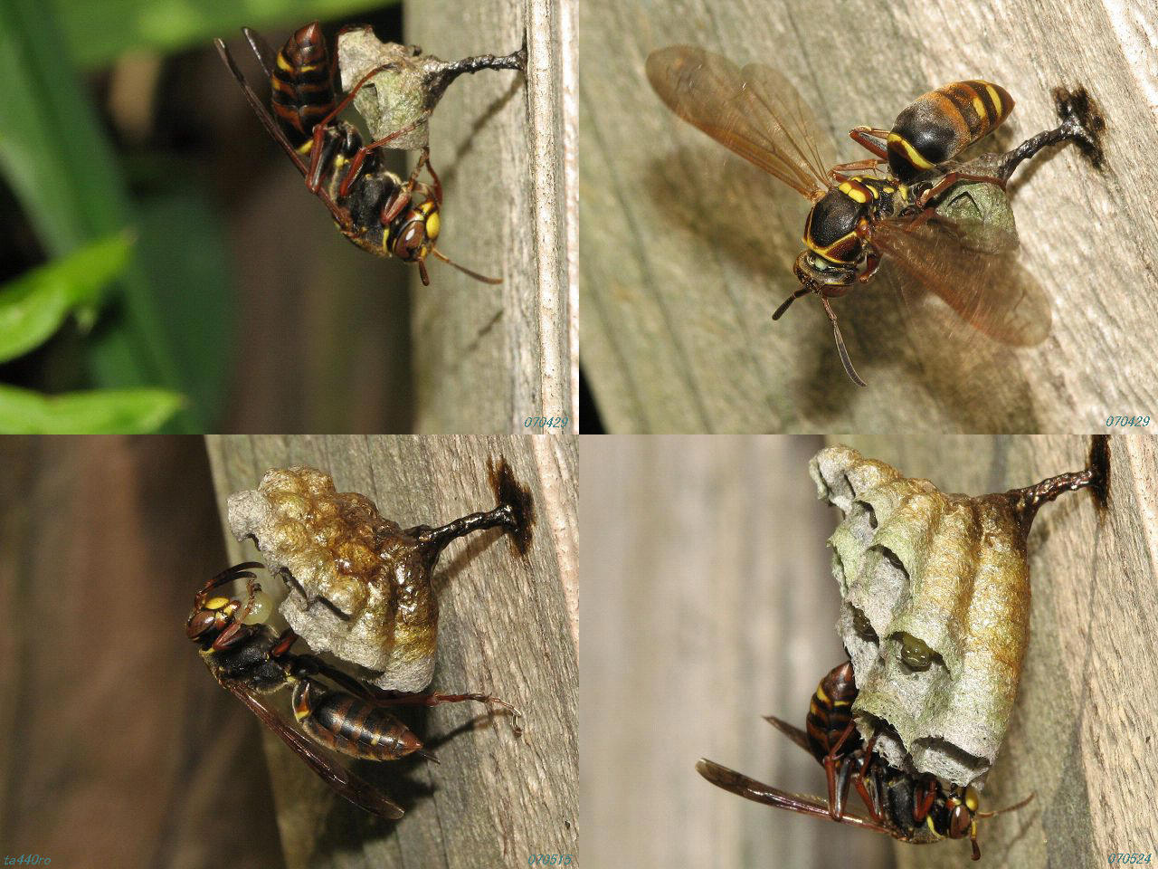 >私もつい先日、河川敷の草むらでアシナガバチが巣作りしているのをいくつも見て、翌週はもう付近一帯草刈り状態だったことがあります。
