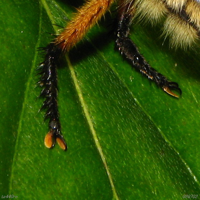 足先の2つに分かれたオレンジの部分は、爪とは別に、爪の下に伸びているものです。何という部分なのか名称を知りません。ちょうど爪を含んで短い節が連続している部分は「付節」というのですが・・・・。