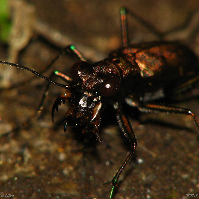 これは「トウキョウヒメハンミョウ」ですが、その名の通り東京近郊(それ以外に福岡・山口!)に棲息しています。分布域から察するに、元々は外来種のようです。080716