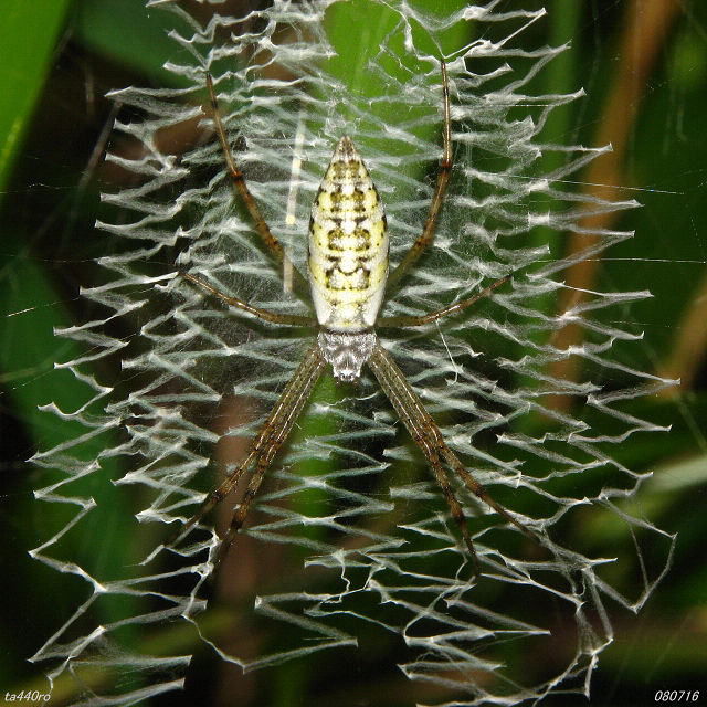 ----このクモの模様は般若のお面ぽいですか。人面ぽい昆虫や蜘蛛はけっこうあるようですが、人面ぽい模様も眼状紋ほどは他の生き物を恐がらせないようですよ。