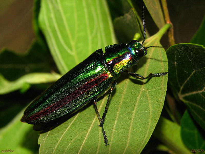 最終的に放すことにしました。容器の中でブンブン羽音を立てているタマムシは何だかとても可哀相でした。タマムシは夏の炎天下、エノキの高い梢を飛び回るのがやはり似合いますよね。