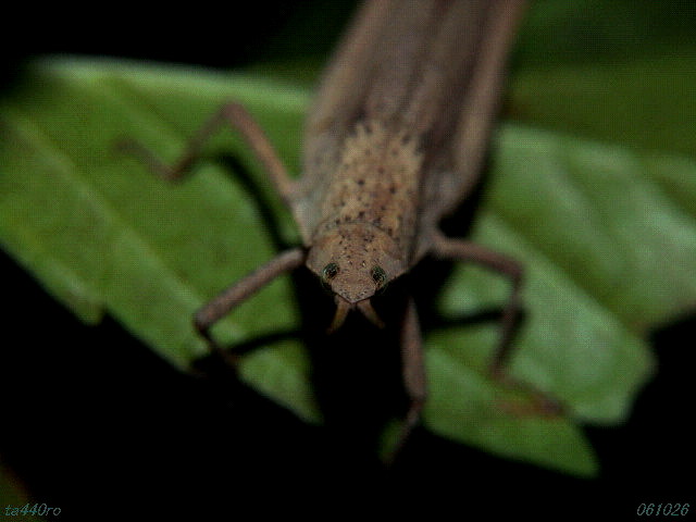 というのは秋の某日、拙宅の狭い庭におんぶした雌雄のオンブバッタを発見したことから始まります。彼らは幾日もそこに留まり続けました。果たして、彼らの色はもともと緑色だったものが、いつの間にか褐色に変わっていました。その2匹が入れ違ってないかと言われれば、容器の中に閉じ込めた訳ではないので、確たる証拠はありませんが、特別でもないピンポイントに別な2匹が入れ替わり立ち代わり来るようなことはないとふつう考えるのが常識でしょう。
