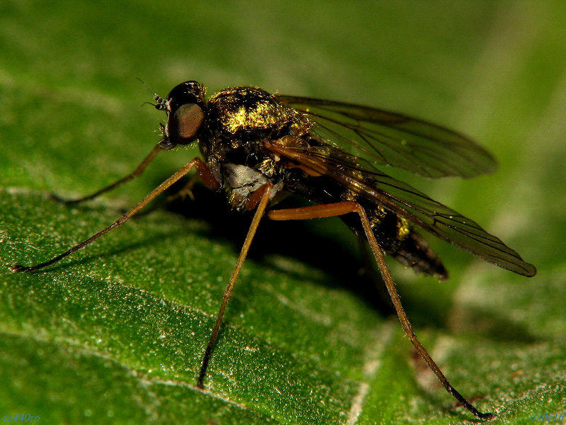 昨日に引き続きヒカリモノです。埼玉県鳩山町で5月中旬に撮影したものです。金色に輝く体が非常に美しく、体形もスマートな虻です。どのような生活をしているのか、私もよく知らないのですが、雑木林周辺で偶然見つけました。070516