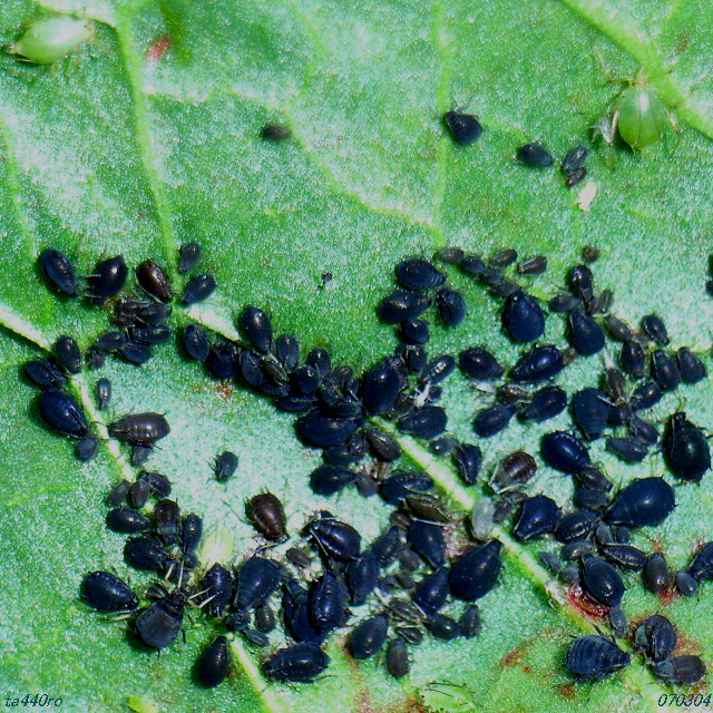 ただそれ以外にもとても気になる点が一つあります。それは上の方に写っている2匹の緑色のアブラムシは何者だろうかということです。070304