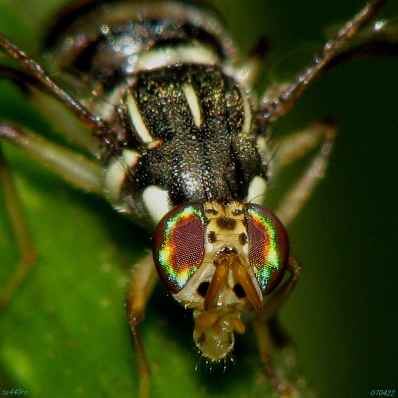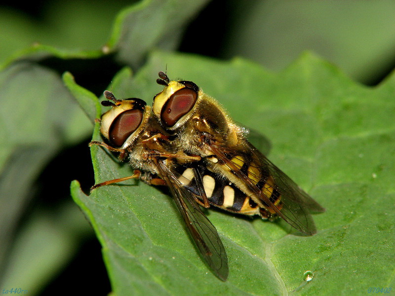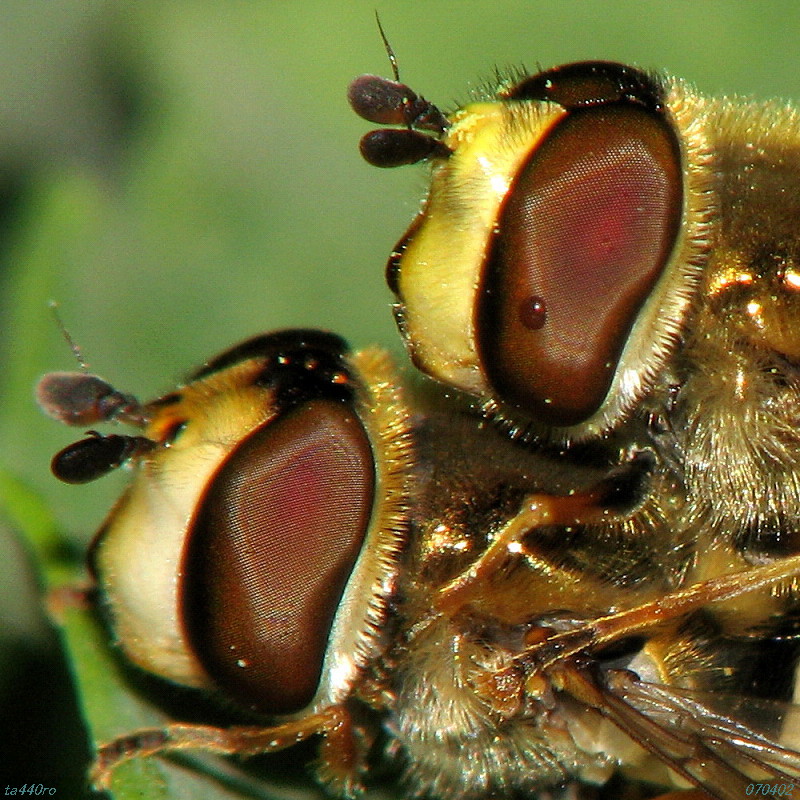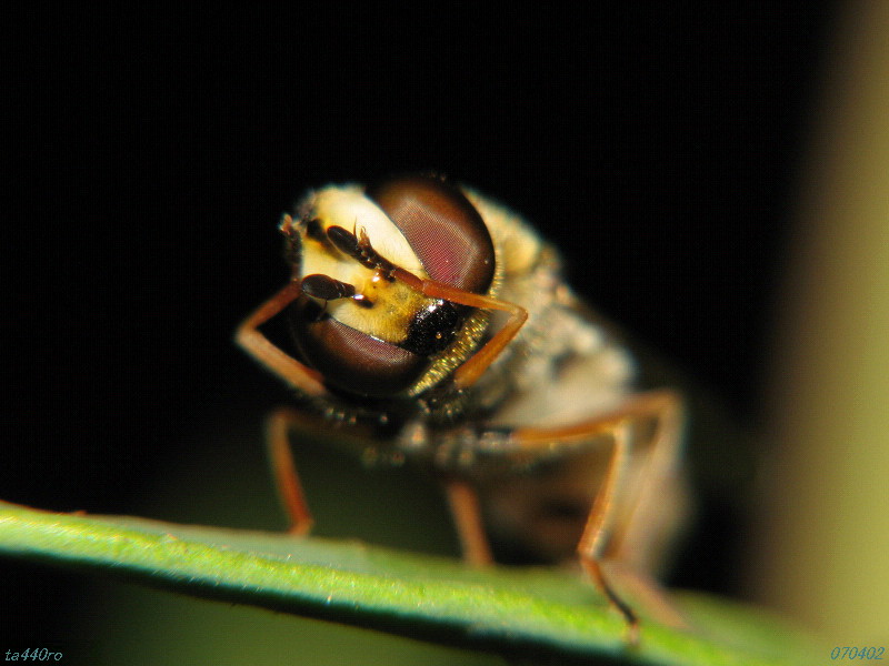 ▼ハナアブの一種? 複眼の縞模様が美しいので載せましたが、残念ながら種名が分かりません。ご存知の方がいらっしゃっいましたらお教えください。070406