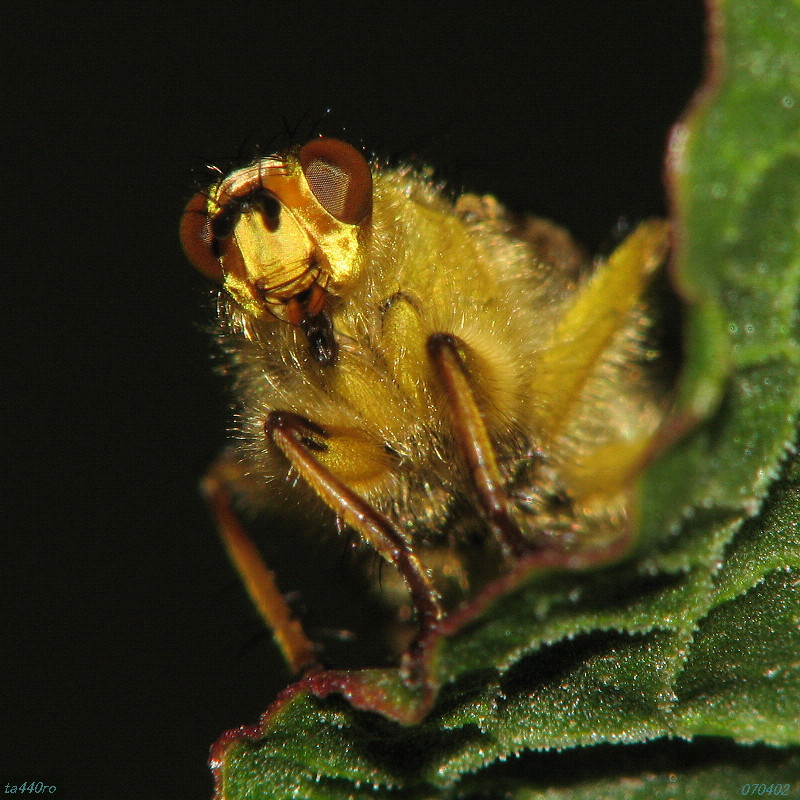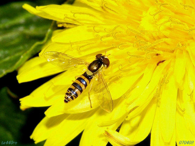 ▼ホソヒメヒラタアブ ハナアブの中でも特に弱々しいイメージの種類です。そうは言っても幼虫時代は他の小昆虫を襲って食べる肉食性だったのでしょう。070408