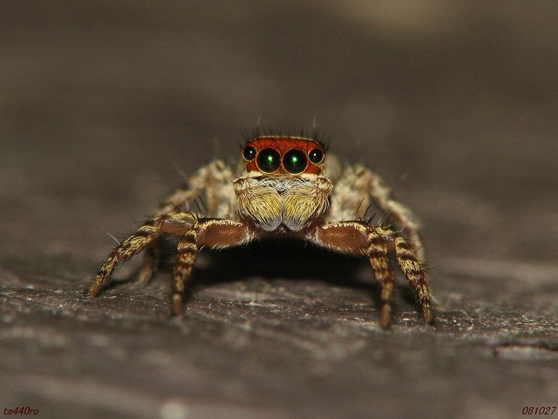 ▼ミスジハエトリ♂。顔はオレンジが目立って華やか。081027