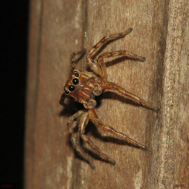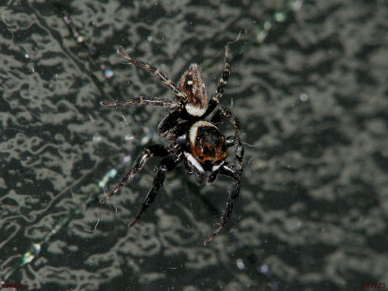 ▼アダンソンハエトリ♂。追う者。部屋の中も餌不足か痩せ細ってきている。081125