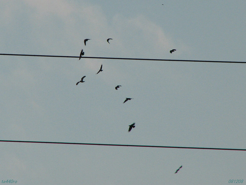 ▼一難さってまた一難、カラスたちに追われるノスリ。081208