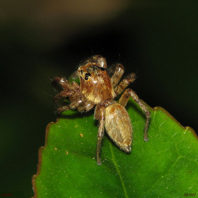 ▼ミスジハエトリ♂の背中。追われる者。081027