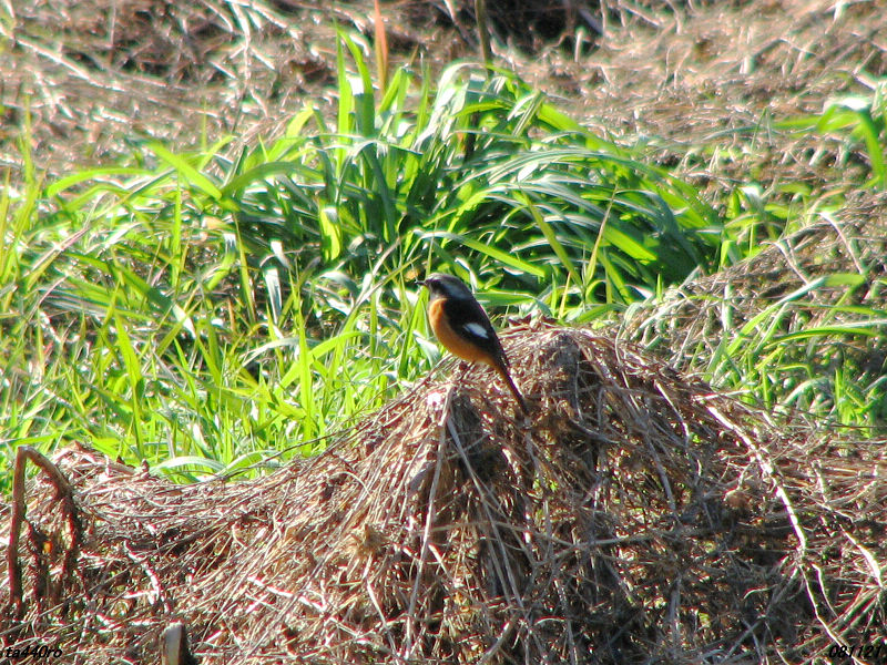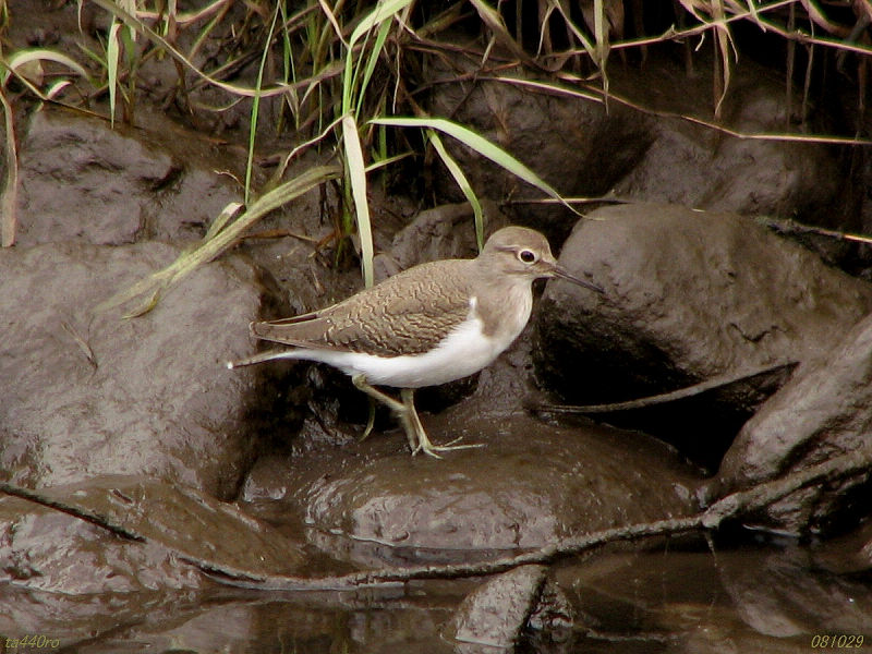 このイソシギは名前に反して陸水にいることも多いようです。非繁殖期には河口や海浜にも出るといいますが、私のフィールドから河口や海浜まで移動したものか、判りかねます。また見沼田圃で鳥の写真を撮ってらっしゃる方の記録では、暑い時期も見られない訳ではないようですが、一般に暖地では冬鳥、寒地では夏鳥のようです。私がよく見るのは冬が中心で、単独でいる個体が多いのですが、さりとて同じ個体をずっと見ているのかも怪しい感じです。2羽が連れ立って飛んでいるのは見たことがありますが、3羽以上を一度に見かけたことはありません。081029