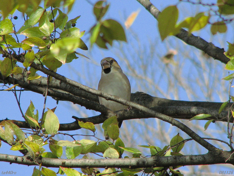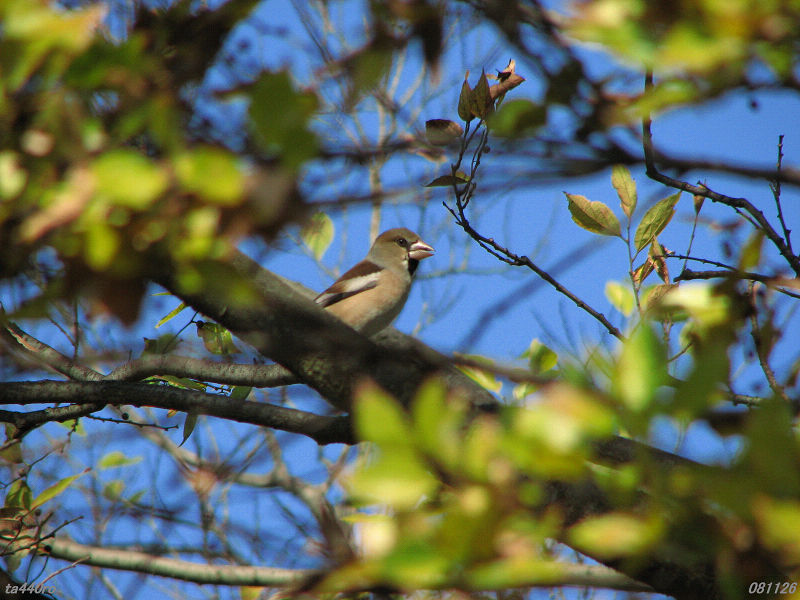 アトリはここ見沼田圃では冬じゅう滞在する鳥ではなく通りすがりの鳥です。寒くなりかけの季節、まだまだ移動中の鳥が見られるようです。081110