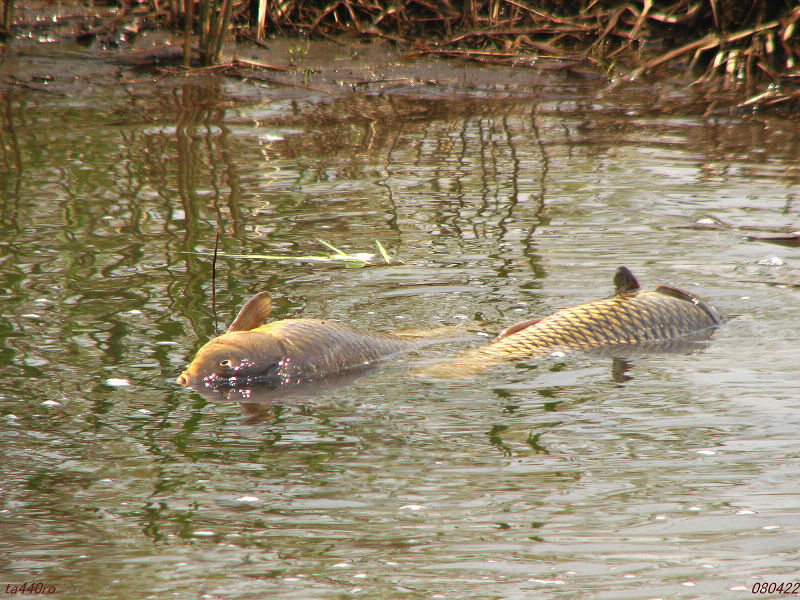 コイは遊泳能力が余り高くないので、コイの滝登りというのは嘘である、という説がありますが・・・・この写真はコイが少し勾配のついた水門を登っているところです。今の時期のコイは産卵のため上流を、そして浅瀬を好んで遡上していきます。その際にこんな所も通過しようとするようです。先日、大雨で沼の外に脱出してしまったコイの写真を載せましたが、http://ta440ro.blog.shinobi.jp/Entry/568/それはこのような性質があるからだと思われます。