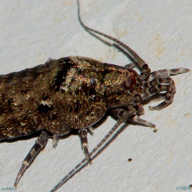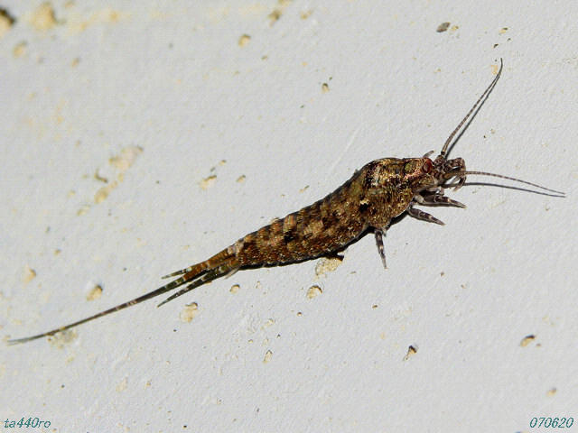 5月20日に載せた紙魚(シミ)に続き、総尾目に属する昆虫、石蚤(イシノミ)です。この仲間は昆虫の中でも特に原始的な特徴を残しているといわれ、幼虫も成虫も姿の変わらない無変態です。