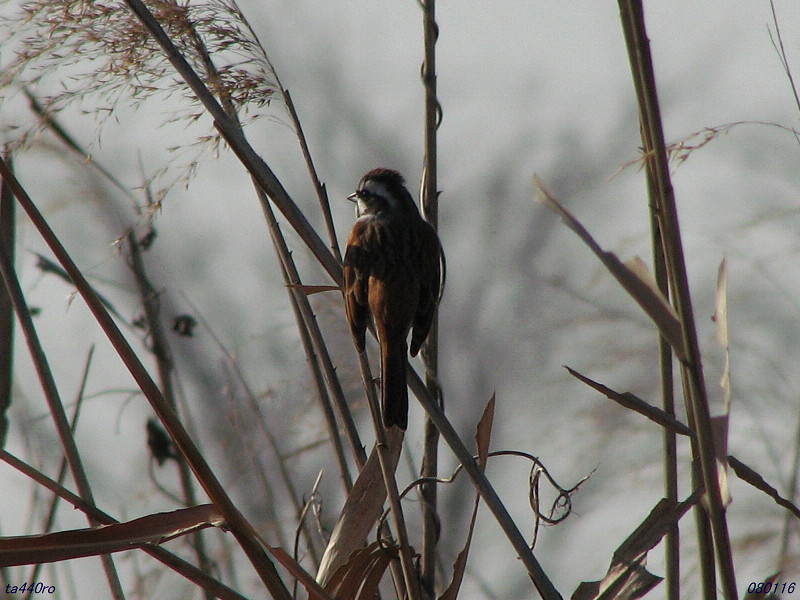 ▼アシの茎に摑まるシジュウカラ。080221