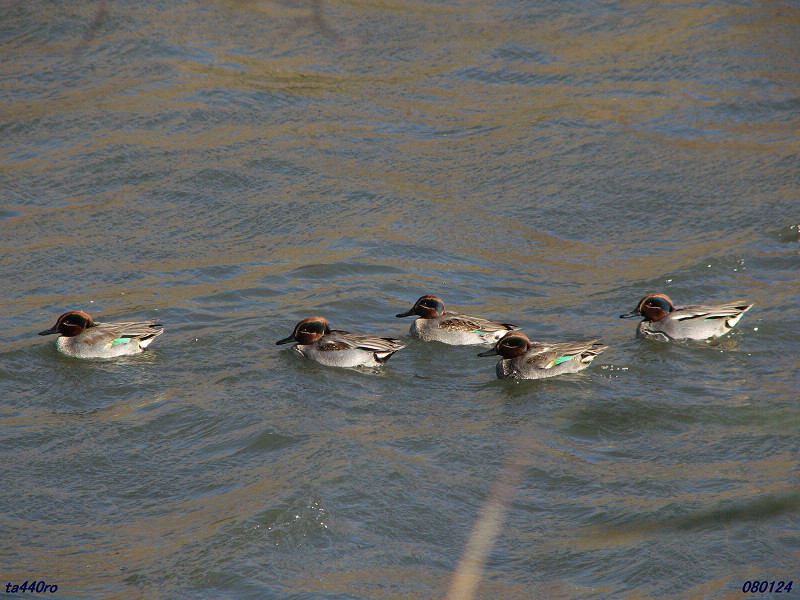 観察できた鳥種・・・・ハシブトガラス、ハシボソガラス、オナガ、ムクドリ、スズメ、ベニスズメ、シメ、カワラヒワ、オオジュリン、アオジ、ホオジロ、カシラダカ、メジロ、エナガ、シジュウカラ、ウグイス、ツグミ、アカハラ、ジョウビタキ、モズ、ヒヨドリ、セグロセキレイ、ハクセキレイ、ヒバリ(声のみ)、コゲラ、アオゲラ、カワセミ、キジバト、ドバト、ハイイロチュウヒ、イソシギ、オオバン、バン、クイナ、アオサギ、ダイサギ、ホシハジロ、ハシビロガモ、コガモ、オナガガモ、ヒドリガモ、オカヨシガモ、カルガモ、カイツブリ、ユリカモメ、カワウ、カルガモとアヒルの雑種080130