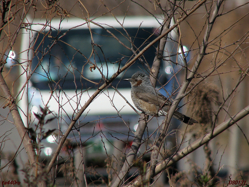 風の強い日というのは鳥たちに似たようなことが起きているように思えます。風の音に対する聴覚の情報処理、というより止まり木が揺れたりすることで、彼らが余分な運動神経ないし脳を働かせているように思えるのです。もっとも人の接近に気づかないのは、足音が風で掻き消されることも大きいでしょうが。080117