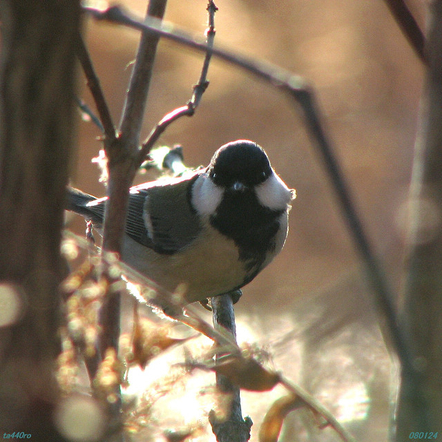 今の時期、シジュウカラは他の種類の鳥たちと混群をつくります。同じカラ類やエナガ、メジロ、コゲラに至るまでシジュウカラの群れと一緒にあるいは近くで行動を共にしている姿をよく見かけます。時にはアシ原の中からオオジュリンと一緒に出てきたりして・・・・笑わせてくれます。なんてフレンドリーな鳥なんでしょう(笑)。対照的にスズメやカワラヒワの群れに他の鳥が混ざっているのは余り見かけません。080212