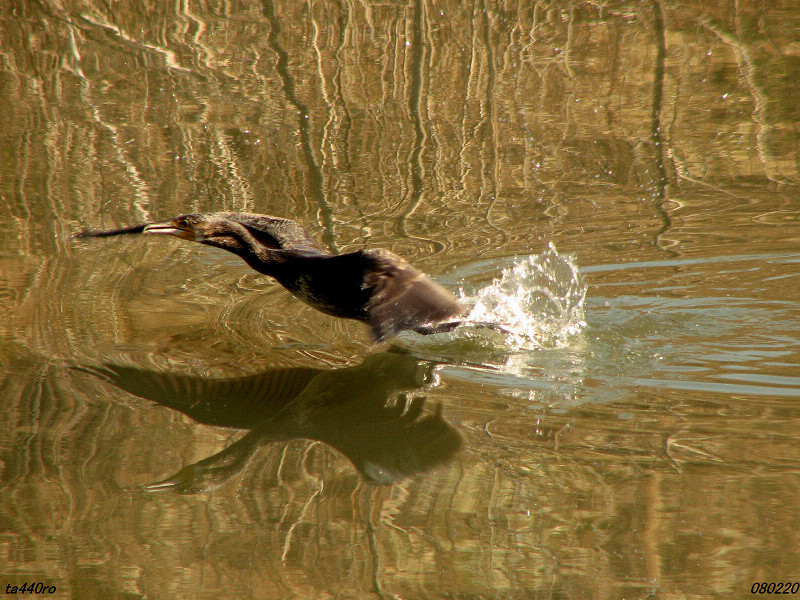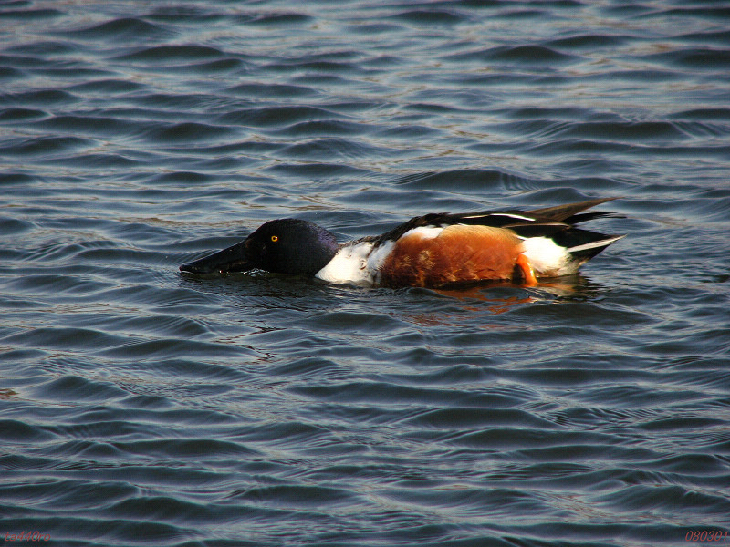▼ハシビロガモのオスが水面の餌を採る。080301