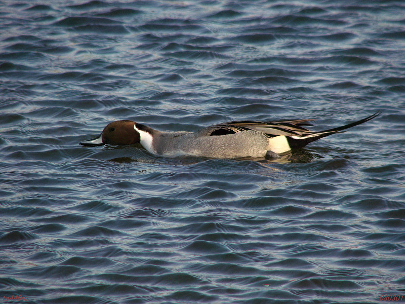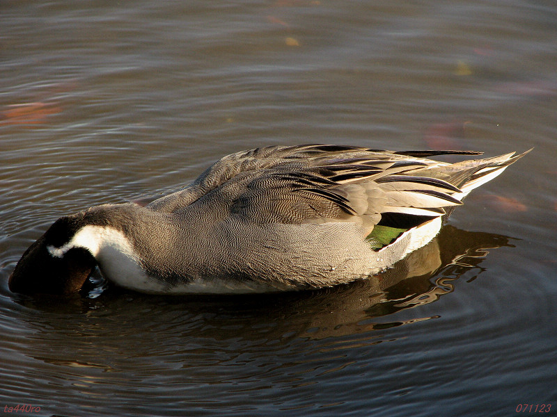 近くでオナガガモも同じようなポーズで餌を採っているようです。ただオナガガモの嘴はハシビロガモのようなブラシがはっきり見えませんから、同じようなやり方で効率がどのくらい違うものなのか分かりません。