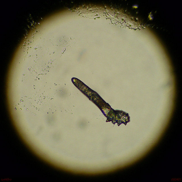 最近、中古で購入したオリンパスの顕微鏡を使って最初に見たのが、このヒルガタワムシの一種でした。浴室に置いてある、ポトスを差したガラス瓶の水を少しスポイトで取って顕微鏡で覗いたら、コレがいたというわけです。