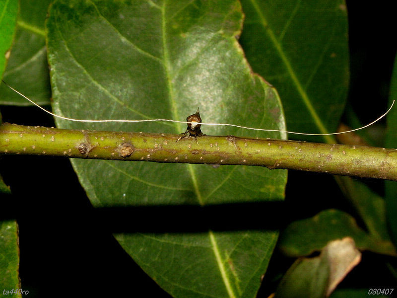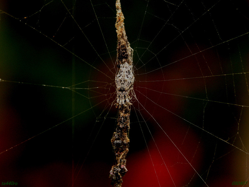 過去にゴミグモの仲間はカラスゴミグモ(カギツメカラスゴミグモ?) http://ta440ro.blog.shinobi.jp/Entry/252/ 、ギンメッキゴミグモhttp://ta440ro.blog.shinobi.jp/Entry/170/ 、ゴミグモhttp://ta440ro.blog.shinobi.jp/Entry/6/ と3回ほど登場しましたが、この仲間にはやはり惹かれるものがありますね。080407