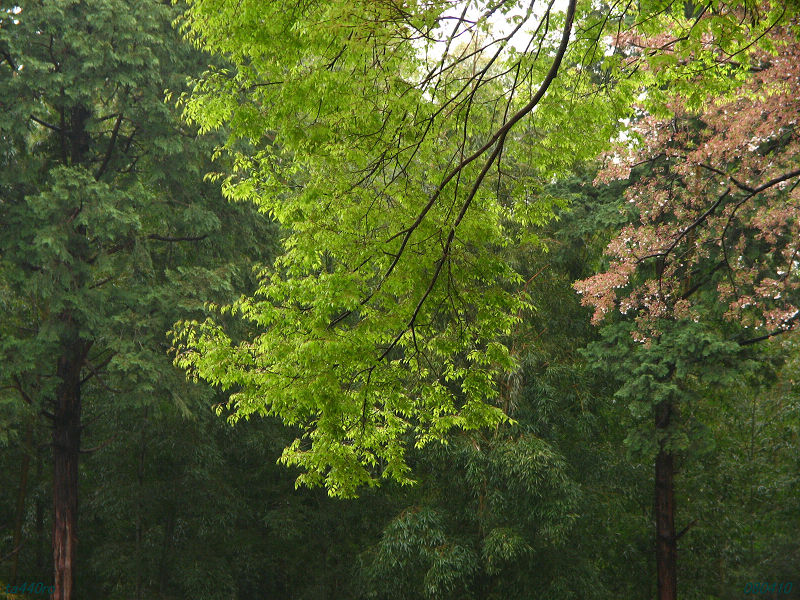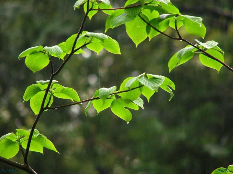 ▼雨は枝を伝って下まで流れず・・・・気ままに落ちる。