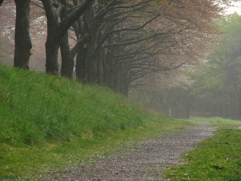 ▼ざあざあ降りの中の終わりかけの桜では、誰も来やしない。