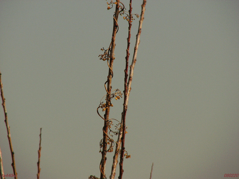この左巻きというのは巻貝と同様、生長して伸びていく方向について左に(反時計回りに)巻いていくという意味です。かつて蔓植物が巻きついている対象を右手で掴んだとき、親指の指す方向に伸びている植物を「右巻き」とした時代がありました。ここではそれを「右手巻き」と呼んで区別したいと思います。080227