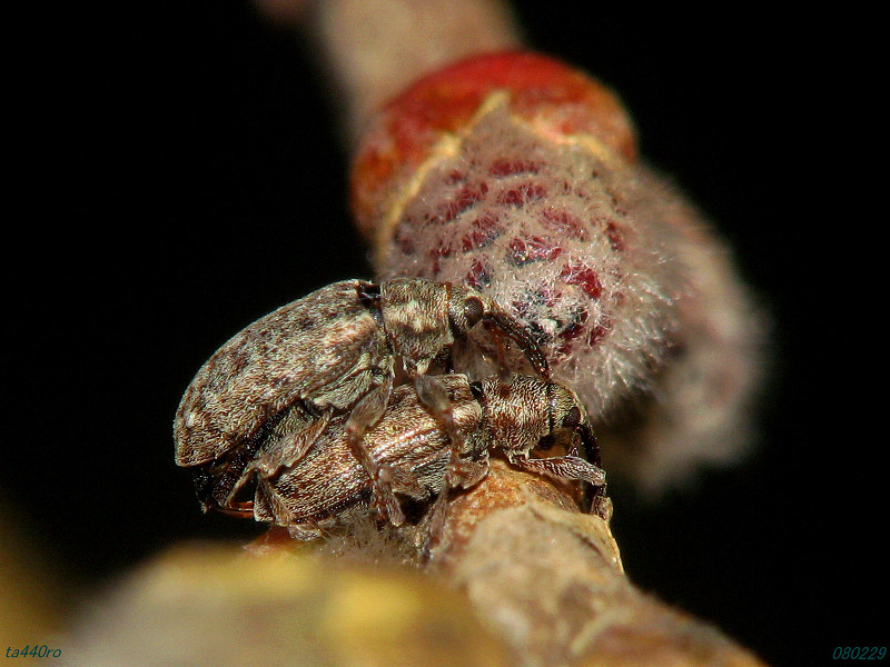 この日もヤナギイネゾウモドキと思しき甲虫たちを同じ木で見かけましたが、こんどは交尾中のケースが多くなりました。もしも年1化だとすると、今の時期に交尾をしてその後産卵すれば、幼虫・蛹を経て来冬までには羽化しているタイミングでしょうか。そしてそのまま成虫越冬し、早春に再び繁殖を繰り返す・・・・そんなサイクルなのかも知れません。年2化以上だと・・・・どうなるか。