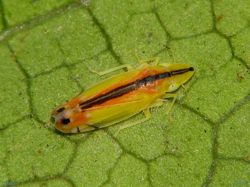 とここまできたところでふっと思い立ってネット上の他の画像を当たってみると、♀の赤は頭部まで入っている個体の写真が多いのですが、私の写真の個体は頭の黒条の両脇には殆ど赤が入っていません。もともと遺伝・環境などで色彩に変異が大きいのか、性成熟の度合いによるものなのかは不明です。そういえば前の♂の写真と比べて、お尻の先の橙色の棒状のものもないようです。どうしてでしょう?もう少しちゃんと調べてみた方がいいかも知れません。080112