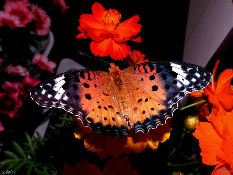 トリバガの背中を拡大してみると鱗粉がみっしりで、鳥のようでもあり、翼竜のようでもあります。070902