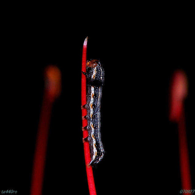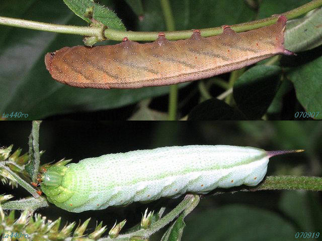 幼虫食餌植物は「みんなで作る日本産蛾類図鑑V2」によればチャ(ツバキ科)、コナラ(ブナ科)、ソメイヨシノ(バラ科)、イヌツゲ(モチノキ科)があげられていたので、相当多岐に渡っていると思われます。070921