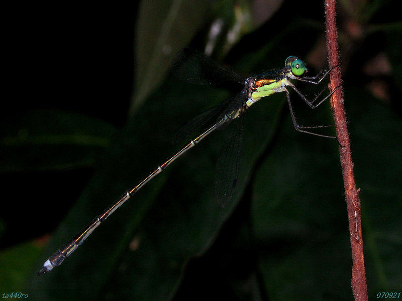 もっともイトトンボ科には属さなくて、アオイトトンボ科という独立した別の科があって、そこに属しています。前に紹介したアジアイトトンボとは科のレベルで違うんですね。パッと目にはさほどの違いを感じないのですが・・・・。