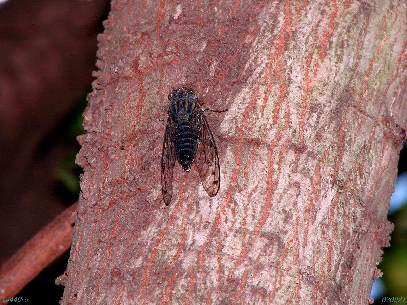 ▼コカマキリが木の幹に止まっていたが、写真を撮ろうとすると逆さまでギロリと睨んだ。070921