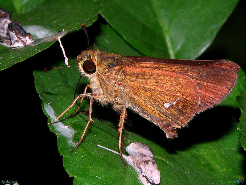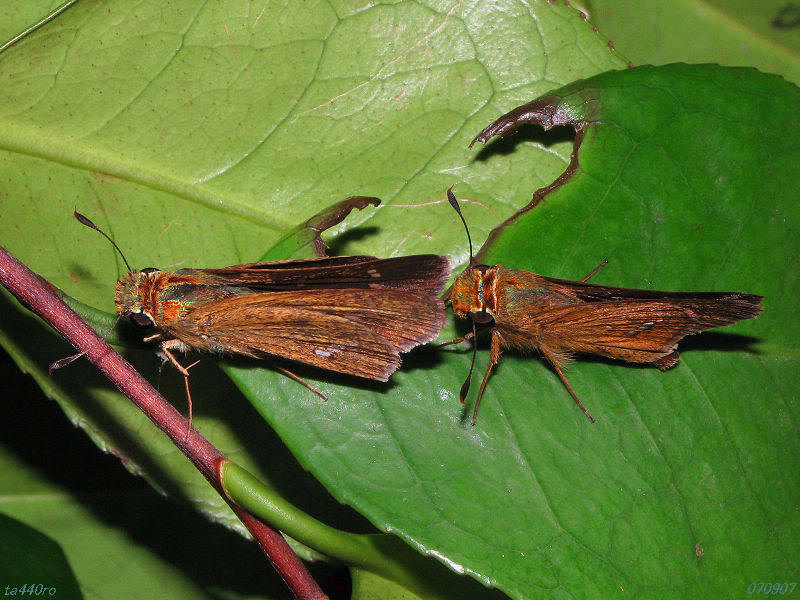 よく似た例が蝶の世界にもあります。写真は、最近あちこちで目にするイチモンジセセリです。イチモンジセセリは南方系の蝶で、関東でいえば北緯37度以南、冬季の最低気温が摂氏2℃以上の地域に定着しているそうです。夏から秋にかけて生息数が増えてくると北上し、限界より北の地域でも見つけることが出来ますが、結局、冬の到来とともに死滅してしまうといいます。このような生活史をもっている蝶は他にウラナミシジミが知られています。蝶なので「死滅回遊蝶」とでもいったところでしょうか。