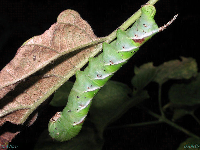 しかし、それは私の探し方が甘かったようで、結局9月12日に終齢幼虫と思われる大きな幼虫を見つけました。しかし隈なく体をチェックしてもクロハラヒメバチの幼虫と思われる寄生者は発見できませんでした。070912