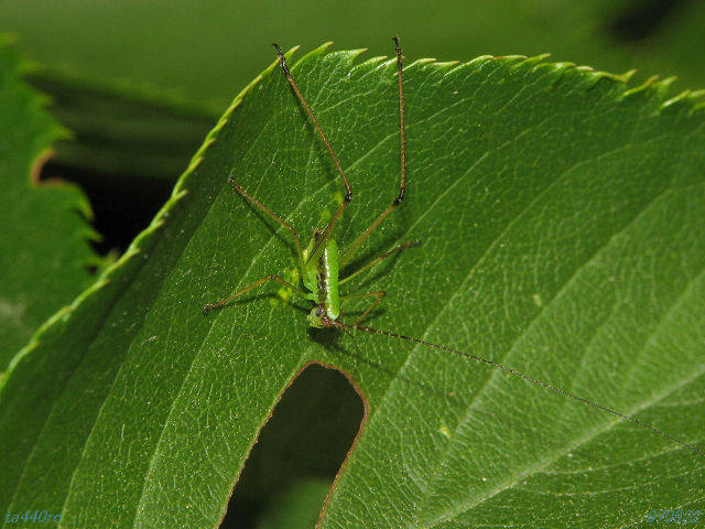 ▼よく似たヤブキリの前脚には沢山の棘があることが識別ポイントのひとつ。070708