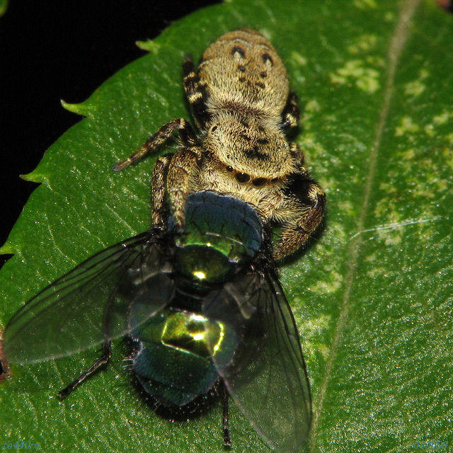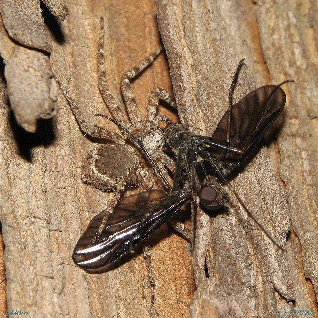 ハエトリグモも様々な種類がかなり長期に渡って活動しているはずなのに不思議と目に付く種類は変遷していくような気がします。個体数の多いネコハエトリ、アリグモ、マミジロハエトリ、アオオビハエトリなどに旬の時期があるようでしたが・・・・。
