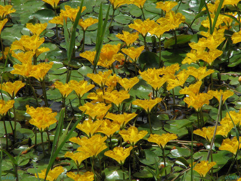 ガガブタなどとともにミツガシワ科の植物で、水底の泥中に地下茎を張り巡らし、水面に楕円の葉を浮かせます。070615