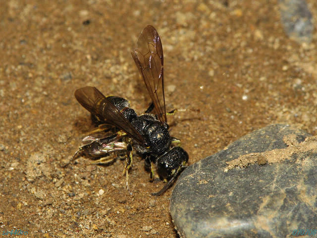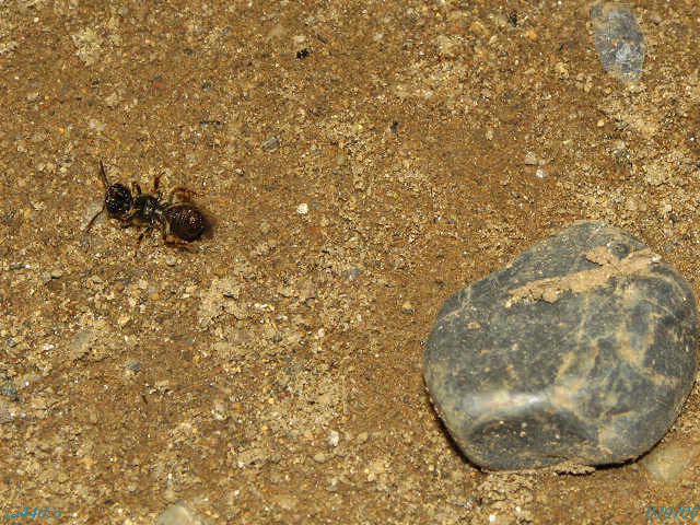 ▼こんな水面に浮かぶ花にも虫たちはやって来て花粉を運ぶ。ムカシハナバチ科のメンハナバチの一種らしい。ヒゲおやじさんに教えて頂いた。http://higeoyaji.com/cgi-bin/toukou/toukou.cgi