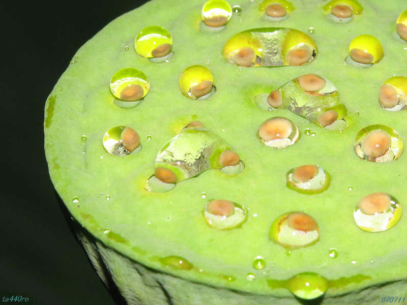 ▼ハスの花が終わると、若い蜂巣が剥き出しになる。