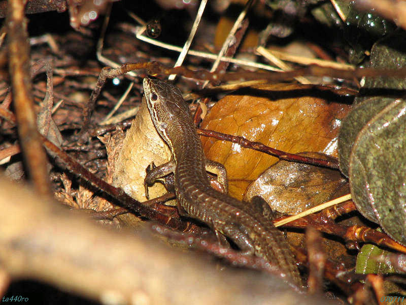 ▼雨の日のカナヘビは乾いた所に隠れているのかと思ったら、意外にもずぶ濡れで日光浴?していた。