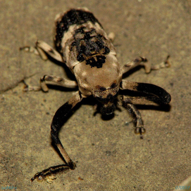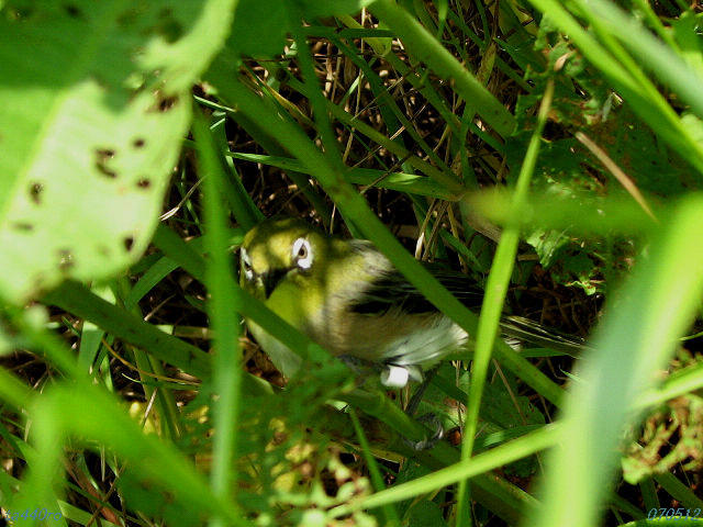 私の持っている図鑑でその白いエビグモを見ると、私の見つけたこのクモとよく似ています。ただし、こちらが殆ど真っ白に見えるのに大して、図鑑のものでは白い部分が少ないようです。和名がないクモならば、とりあえず“ハラジロエビグモ”とでもしておきましょうか。070524