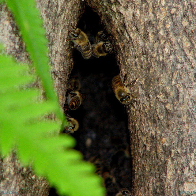 2週間ほど前に埼玉県北本市にある自然公園で、ニホンミツバチの巣を見かけました。可愛らしいミツバチがブンブンいいながら出入りしていましたが、去年は天敵であるスズメバチの巣もあったことを思い出しました。今年はスズメバチの巣がどうなっているのか分かりませんでしたが、スズメバチも珍しい昆虫ではないし、近所に一つや二つ、巣があるんでしょうね。