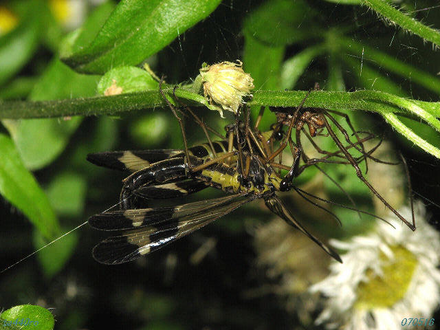 ▼ヤマトシリアゲムシ。メスが食べているアシナガグモはオスからのプレゼントかも?070516