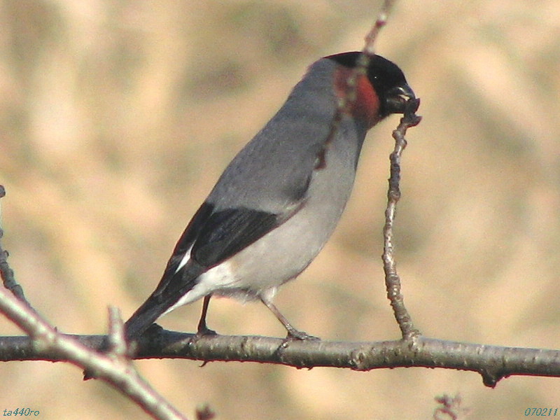 ▼同じアトリ科のウソですが、精一杯背伸びして芽を啄ばむ様子が愛らしい。