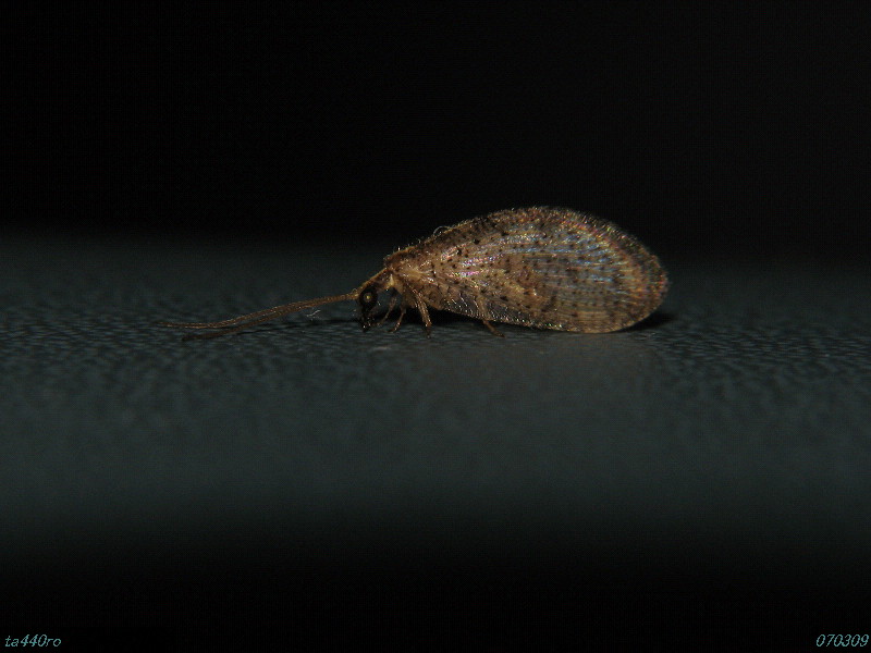 チャバネヒメカゲロウ・・・・こちらの方が翅に小さい黒紋が多いので違う。