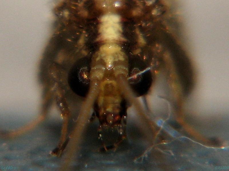 クサカゲロウ科に近縁の仲間で、幼虫、成虫とも肉食昆虫であるようです。フラッシュを炊いて写真を撮っている短い間に死んでしまったのは謎ですが、小さく(8mm程)華奢な体つきで、か弱そうに見えるのに、顔を正面から見ると、如何にも獰猛そうなのはその性質を表しているようです。070309
